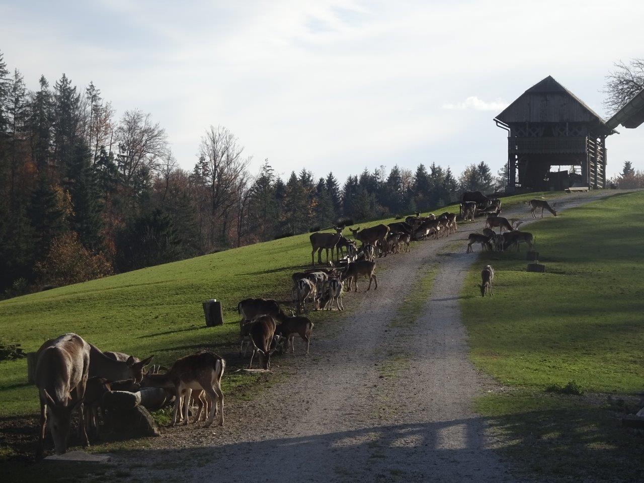 Pot smo nadaljevali do parka Dobrne ter do domačije Lamperček, tam so nas pričakali lačni jeleni in okrepčilo za nadaljevanje poti proti domačiji Blažiš, s konkretno zbirko starin, od koles, motorjev, avtomobilov do starega orožja.