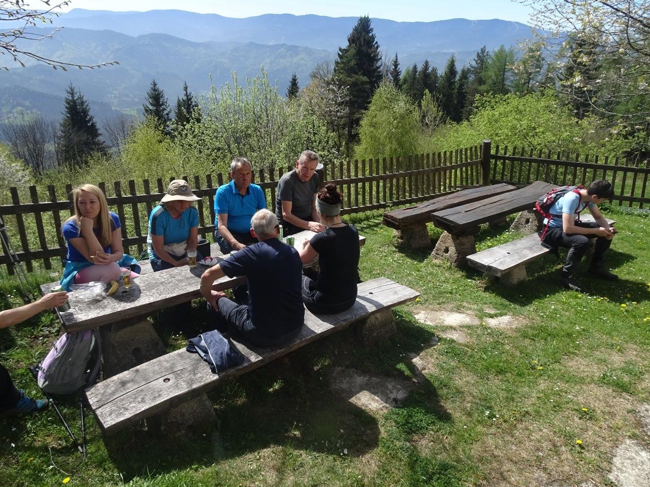 Preteklo nedeljo, teden dni pred koledarsko planiranim izletom zaradi obveznosti glavnega vodnika, novega birmanskega botra, smo se v lepem vremenu malce kasneje kot običajno odpeljali proti mejnemu prehodu Radlpass nad Radljami ob Dravi pod pogorjem Kozjak na višini 670 m nad morjem. Med prijetno vožnjo preko Koroške sta se štirinajstim planincem pridružila še dva skoraj domačina, večini stara znanca. Na mejnem prehodu smo lahko izkoristili gostoljubje kar dveh odprtih trgovinic dobro založenih z raznovrstnim blagom.