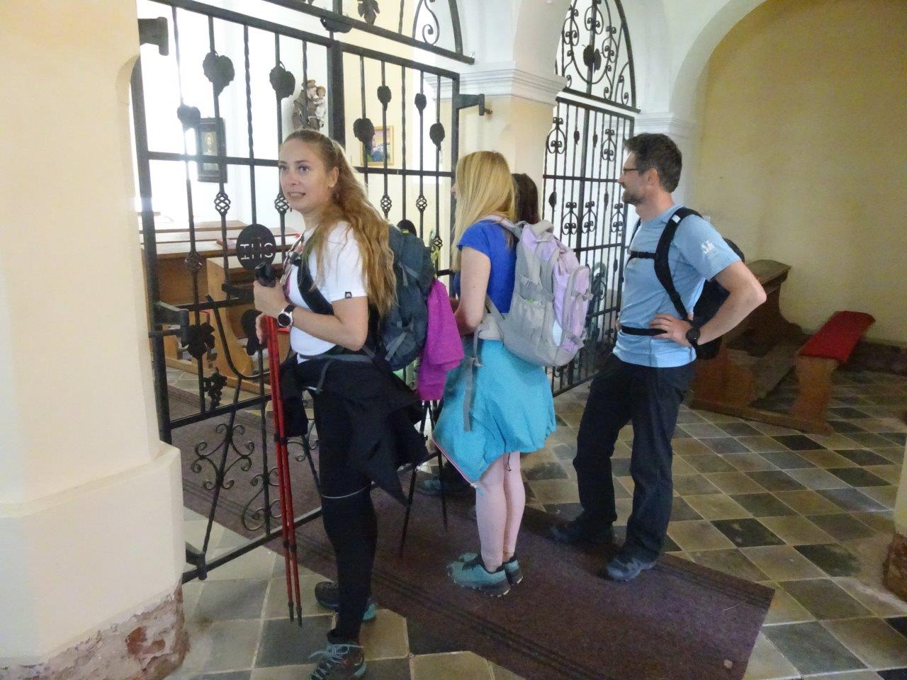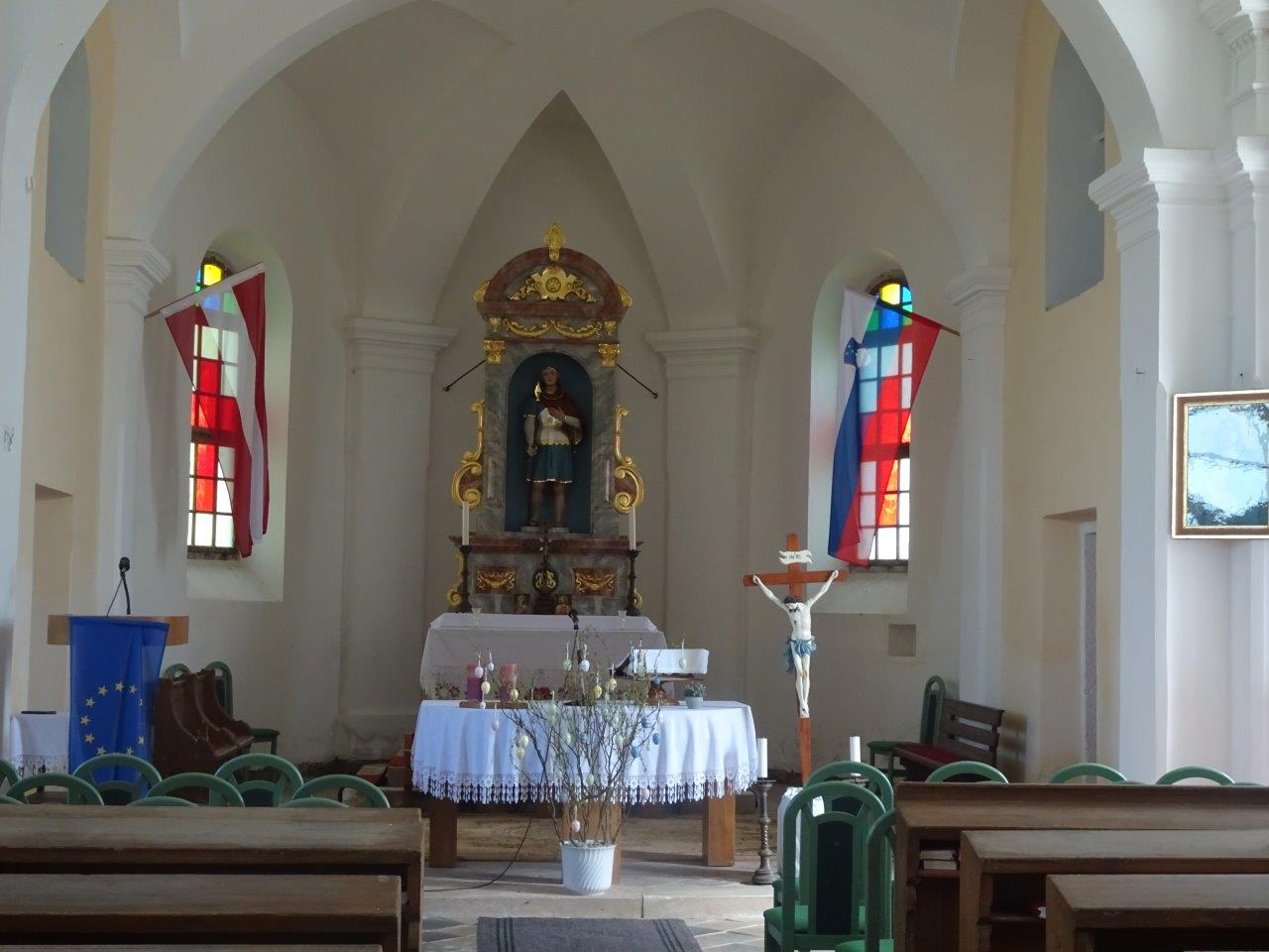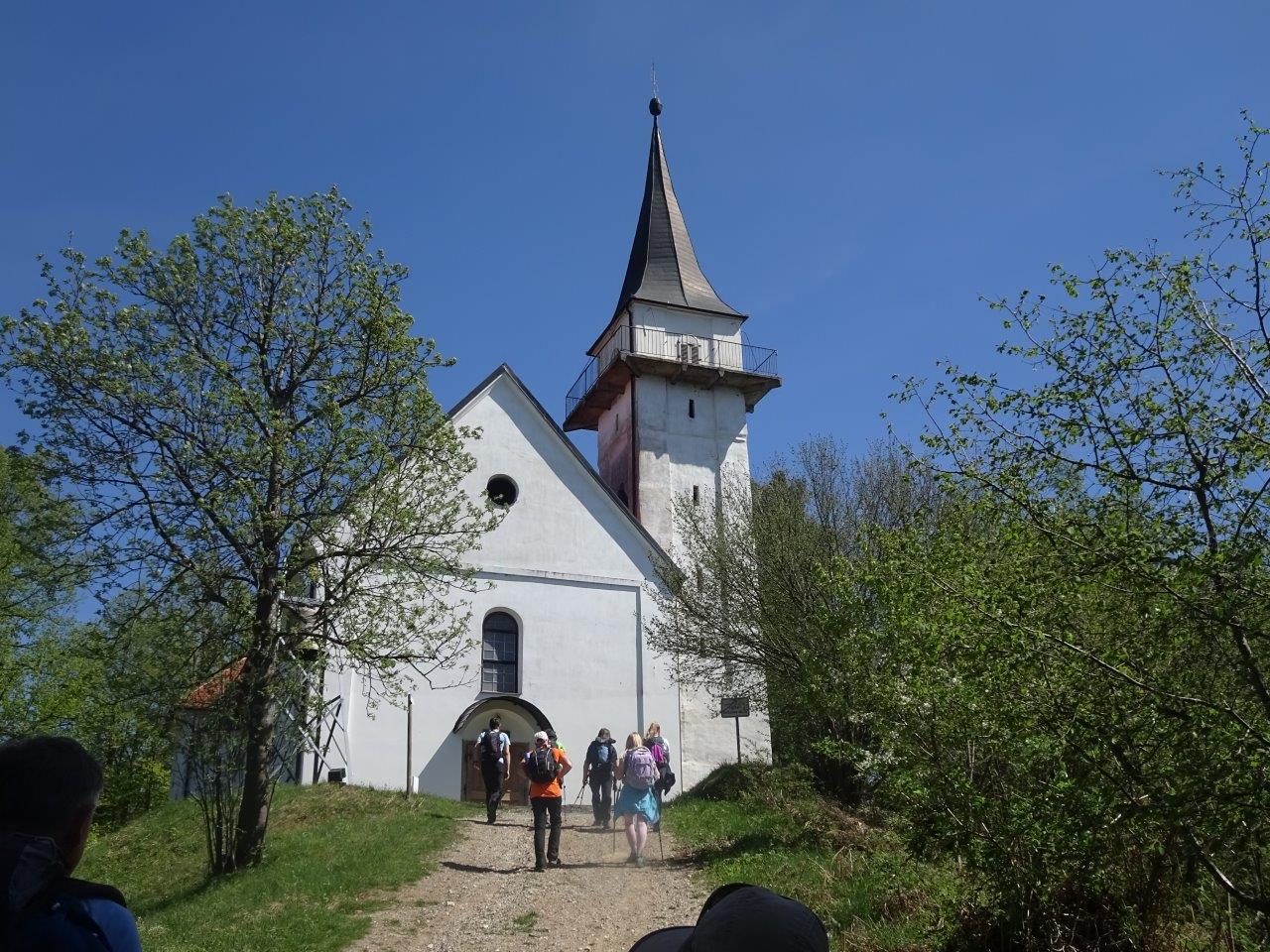 Pot nas je nadalje vodila proti našemu današnjemu glavnemu cilju Kapunarju na mejnem grebenu s sosednjo Avstrijo. Večkrat smo prestopili mejo za kakšen meter in se tudi vrnili na našo stran. Prvi daljši počitek smo opravili pri Kapunerhutte malo nad 1000 m n.v.. Med vojno je bila uničena, pred petdeset leti pa odlično obnovljena in še danes je privlačna in odprta vsakemu, ki se znajde v bližini. Sledilo je fotografiranje pogled proti dolini in kratek vzpon do samega nerazglednega vrha Kapunar 1051 m n.v.. Njegovo ime menda izvira iz oblike njegovega vršnega grebena s čopastim drevjem, ki spominja na petelina - " kapuna". Iz našega osvojenega petelinčka smo se spustili proti bivši vojaški karavli, ki jo danes uporabljajo domači radioamaterji iz Radelj. Prejeli so jo v slabem stanju in jo počasi obnavljajo in tudi mi smo bili deležni dobre kavice iz nove kuhinje s pomočjo naše Brankice. Pogreli smo se na soncu in odžejali, spominsko fotografirali in poslovili od prijaznega domačina ter pot nadaljevali proti Kobanskemu. Veliko je poti in kolesarskih steza v okolici, ki so dobro označene za popotnike z obeh dežel (Grenz Panorameweg). Hitro smo prispeli do Sv. Pankracija velike stare cerkve, ki je bila nekoč prav na mejnem grebenu z eno polovico vsaki državi na kar še vedno opozarjata obe državni zastavi na obeh straneh oltarja. Cerkev je imela burno zgodovino, večkrat uničena in požgana, leta 1935 so ji dozidali velik zvonik sedaj tudi razgledni stolp s katerega smo si ogledali okolico obeh držav. Leta 1966 je bila v celoti vrnjena Sloveniji in bila zgledno obnovljena s podporo obeh sosednjih si dežel. Po prašni makadamski poti smo se odpravili mimo lepo urejenih domačij proti vasici Remšnik. Lepo vaško središče s cerkvijo Sv. Jurija, župniščem, šolo in seveda za naša izsušena grla pomembno odprto vaško trgovino in gostilno, kjer smo se dobro pripravili za vožnjo proti domu, saj nas je že čakal naš vodnik s svojim busom pod najstarejšo župnijo v Dravski dolini, prvič omenjeno okoli leta 1200. Ob današnjem sneženju je jasno, da smo pravočasno izkoristili lepo aprilsko nedeljo ter ogreli svoje kosti in telo pred prihajajočo hladno fronto.