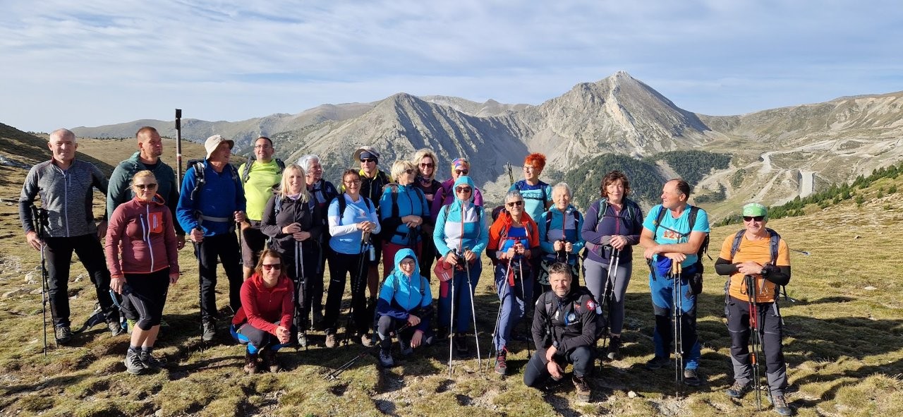 Prvi del poti je bil živahen, saj je prav tisti dan potekalo tekmovanje v gorskem teku. Španci so očitno strastni gorski tekači – bilo jih je ogromno. Sledilo je prvo uradno slikanje, nekaj čokoladnih zalogajev, nato pa smo se podali proti drugemu vrhu. Na najvišji točki ture, Pic de Bastiments (2881 m), smo si privoščili daljšo malico in seveda – čas za fotografiranje. Vodniki so že zavijali z očmi ob našem večnem »dej še mene tukej sliki«, ki ga je ponavljala ista druščina.