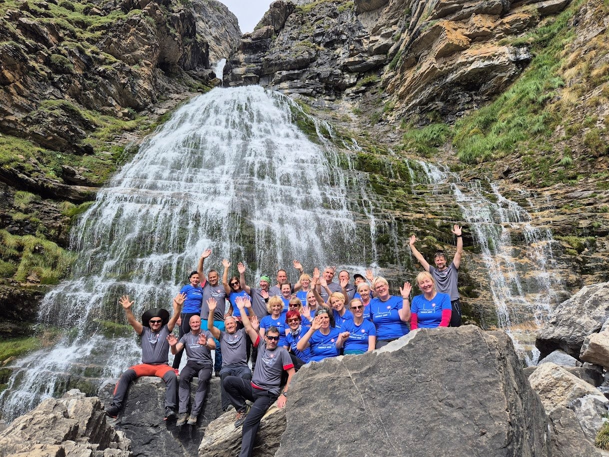 Peti dan pohodov je bil prijaznejši do mojih nog in žuljev – bolj ravninski, a nič manj čaroben. Skupaj smo se odpeljali do narodnega parka Monte Perdido, kjer smo se razdelili na daljšo in krajšo turo, obe pa začeli v kraju Pradera de Ordesa. Pot nas je vodila mimo številnih slapov, tolmunov in potokov, ves čas pa nas je spremljalo šumenje vode. Ob vsakem slapu smo se seveda morali ustaviti za fotografijo. Velik del poti je potekal skozi sotesko, ki se je na koncu razprla v veličastno dolino, obkroženo z vršaci. Tam nas je pričakal mogočen slap Cascada Cola de Caballo – cilj našega pohoda. Poslikali smo se, pomalicali in nato pospešili korak, saj nas je znova lovil dež. Po kratkem okrepčilu v kavarnici na izhodišču smo se vrnili v hotel – najprej pod tuš (lekcija prejšnjega dne!), nato na večerjo in večerno druženje. Tokrat ne predolgo, saj je nekatere naslednji dan čakala najtežja tura tabora. Nekaj junakov je še spremljalo košarkarsko tekmo Slovenija – Nemčija in ob porazu rahlo utapljalo žalost, ki pa je hitro izpuhtela – noč je prinesla rojstni dan cimre Mihaele, ki smo ga veselo proslavili, preden smo se razkropili v postelje.