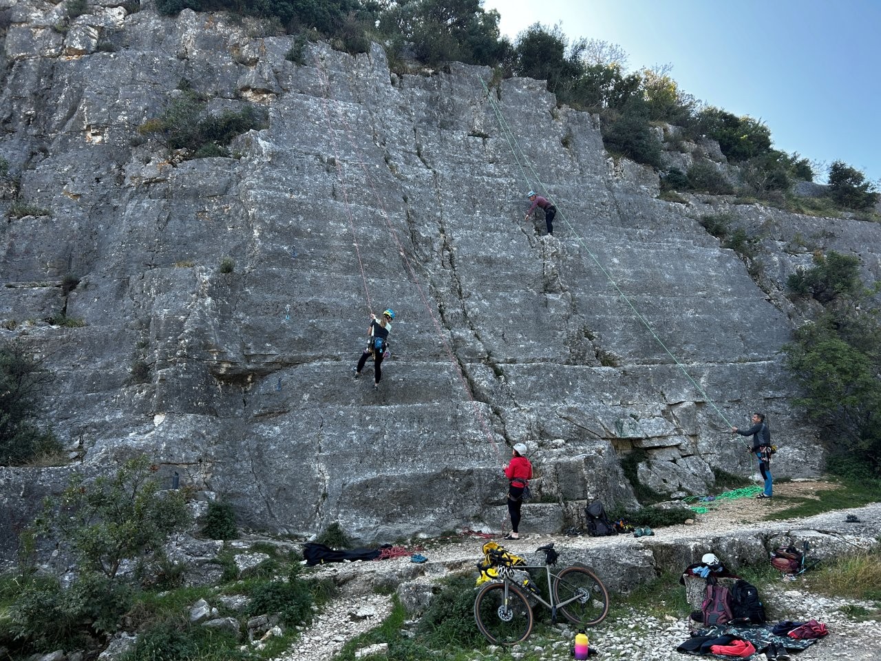 Oba dneva smo dopoldne preživeli v plezališču v Rovinju v neposredni bližni morja. Stene so ponujale raznoliko izbiro smeri, primerne tako za začetnike kot za bolj izkušene plezalce. V prijetnih razmerah smo utrjevali plezalne veščine, spoznavali nove smeri in si medsebojno pomagali pri varovanju ter izboljševanju tehnike. Vzdušje je bilo ves čas odlično, polno smeha, spodbud in pravšnje doze adrenalina.