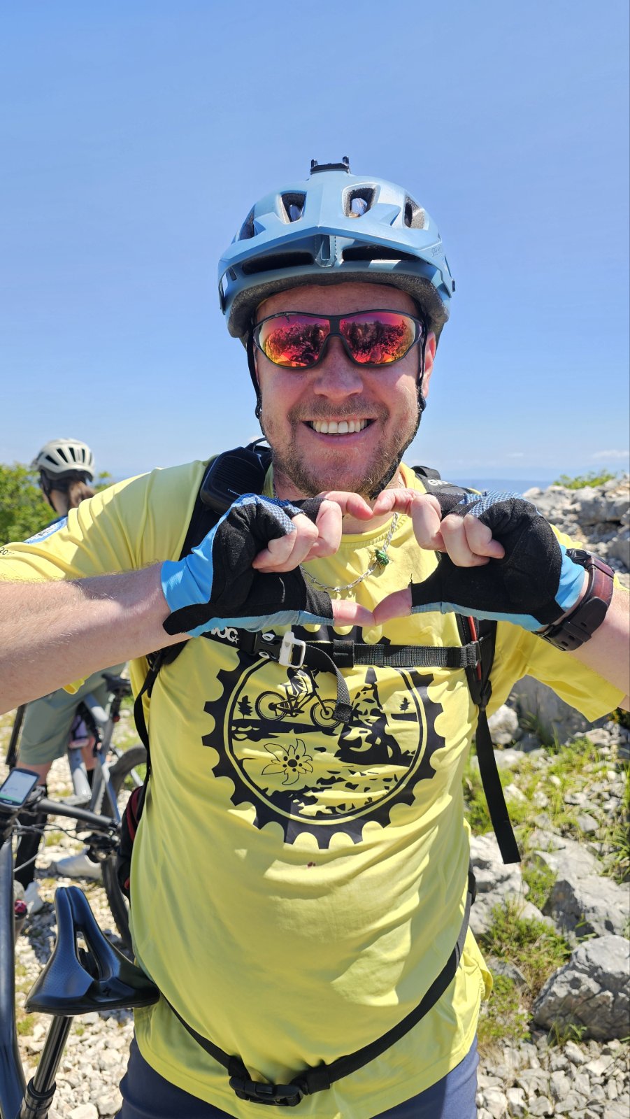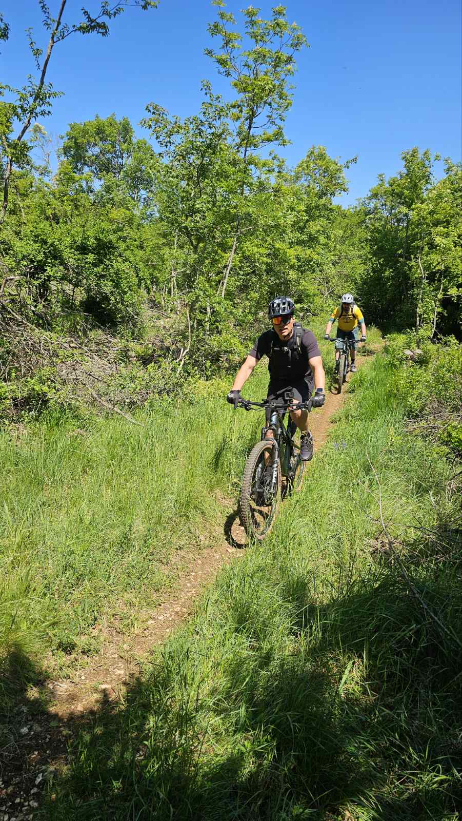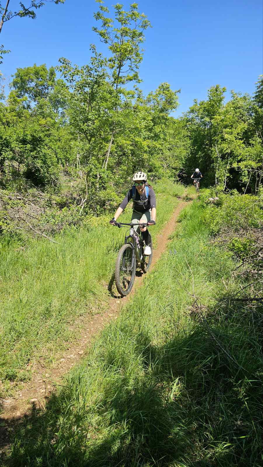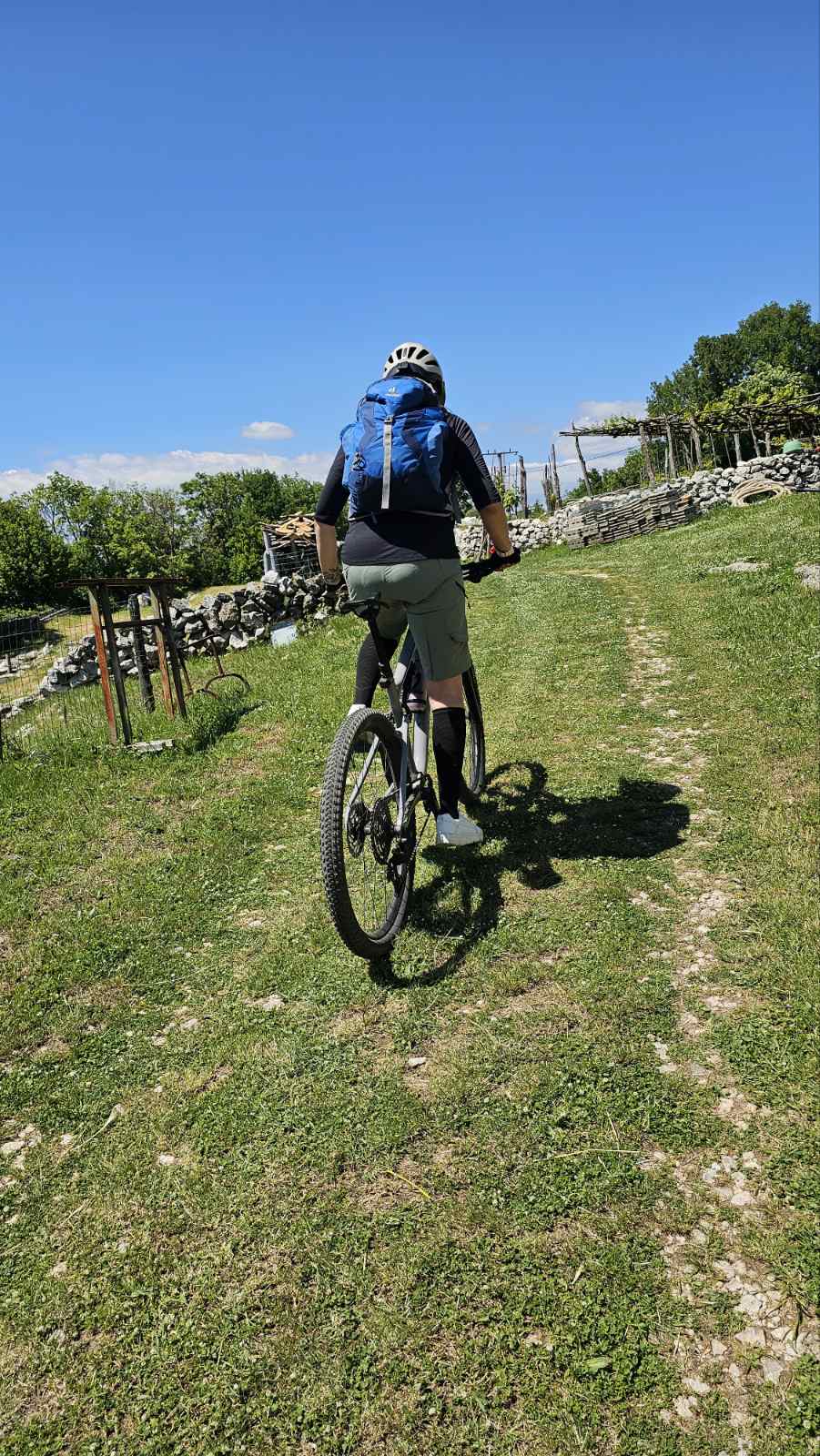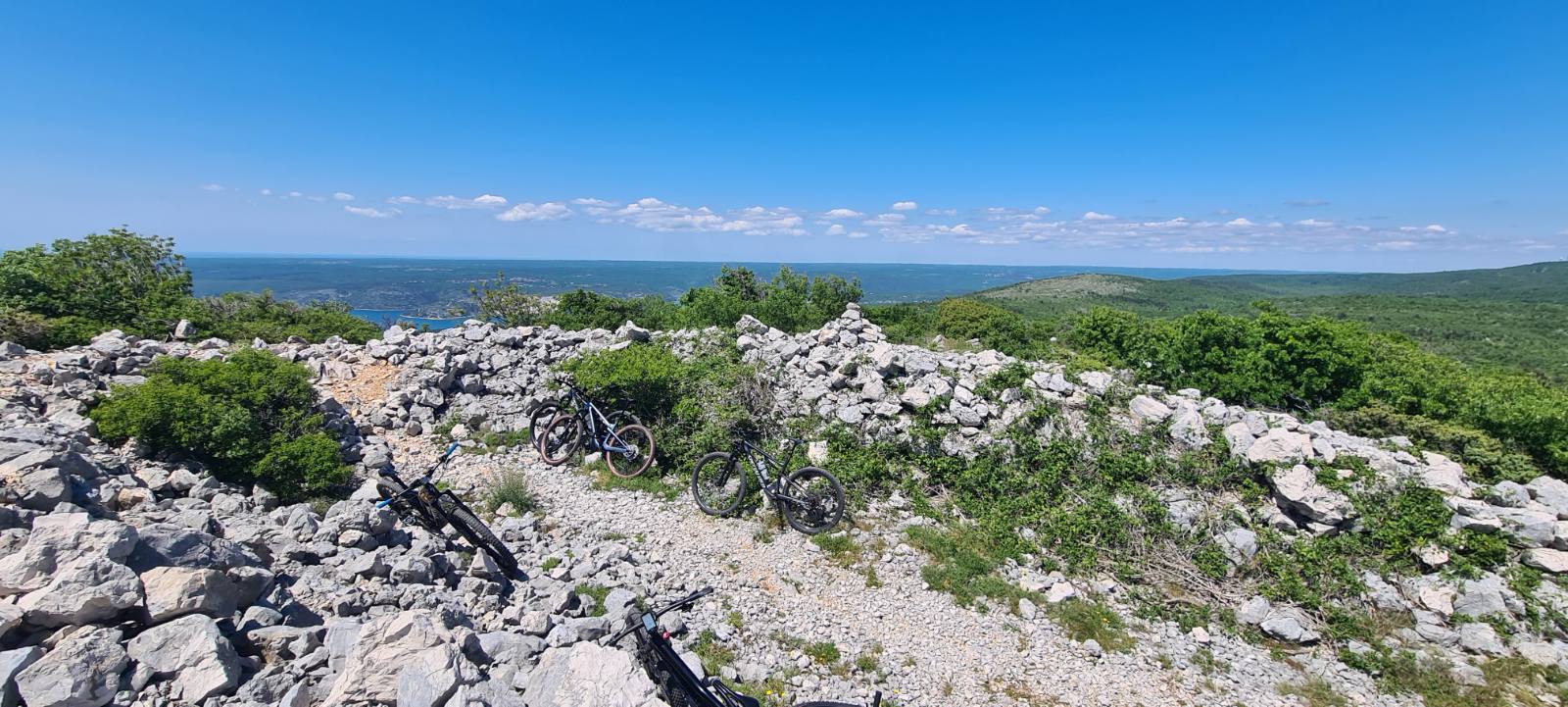 Naša kolesa so občutila malo asfaltne podlage, veliko kamnitih kolovozov ter grobe ozke poti. Čisti kraški teren. Med turo smo uzrli nekaj tipičnih istrskih kamnitih hišk, ki so sramežljivo kukale iz gozdičkov, vonj po cvetočih dišavnicah pa je umilil utrgano »ketno« nekje na prvi tretjini poti. Prisotne je bilo ogromno dobre volje, predvsem med vožnjo gor in dol po slikoviti pokrajin, sicer brez nekega pretirano izrazitega ali resnega klanca. Pa se je kljub temu konec ture nabralo 900 prekolesarjenih »višincev«. V kotanji pri jezercu, blizu našega cilja, smo si nabrali novih moči, ki smo jih potrebovali za zadnji, precej strm vzpon.